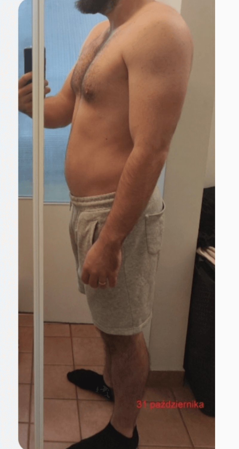 - Analiza progresu w postaci raportu co 4 tygodnie, analiza pomiarów cm krawieckim i zdjęć sylwetki