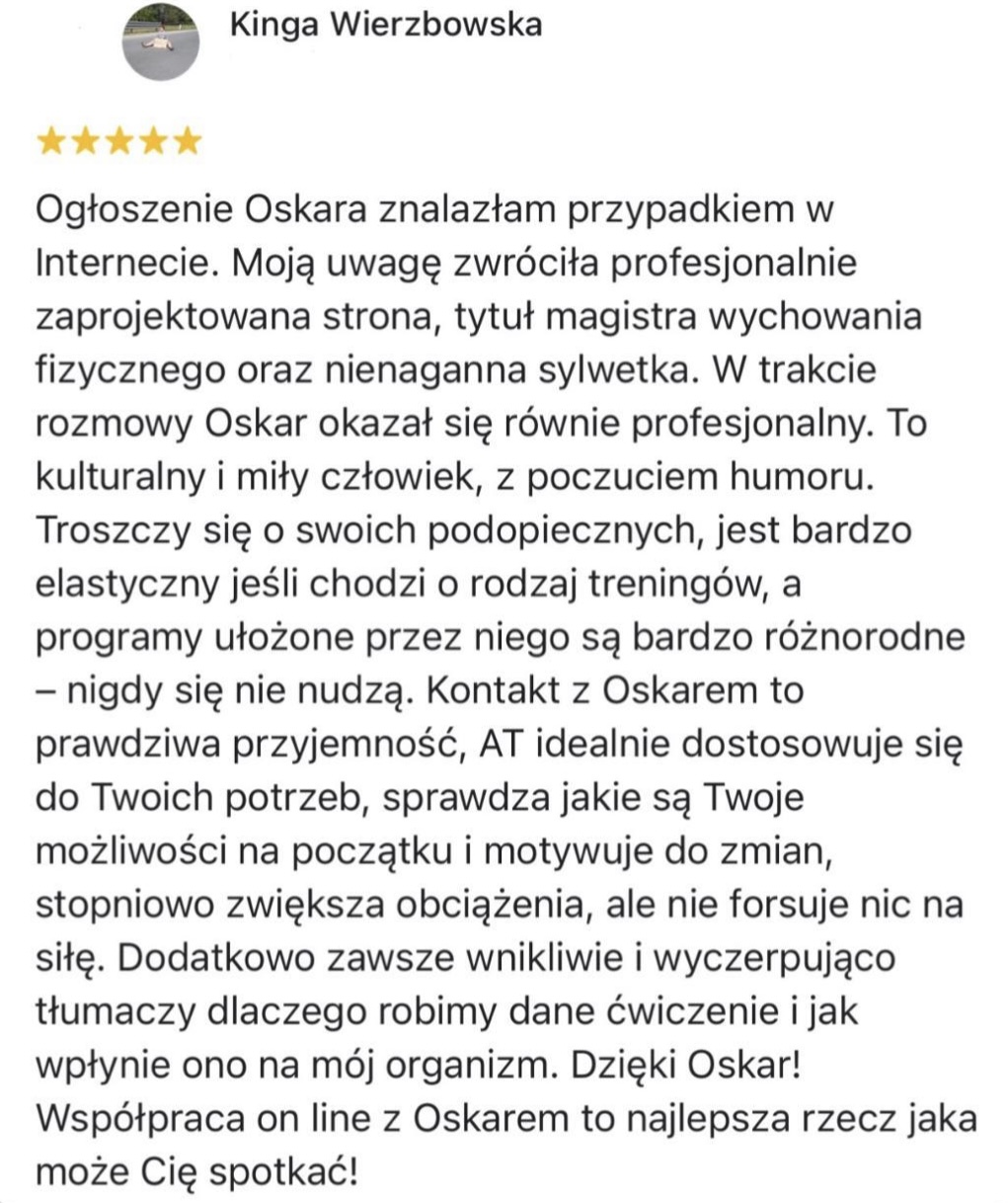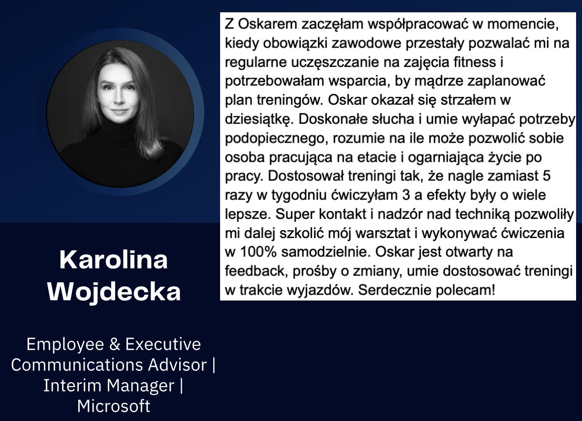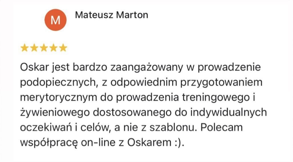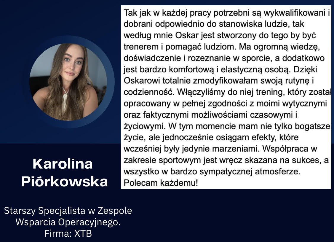 - Uprawiałem 6 dyscyplin sportowych w przeciągu 20 lat regularnego treningu. Startowałem na niezliczonej ilości zawodów. Dzięki temu, wiem jak prowadzić osoby, które chcą połączyć trening siłowy z innymi dyscyplinami i realizować nowe wyzwania sportowe!