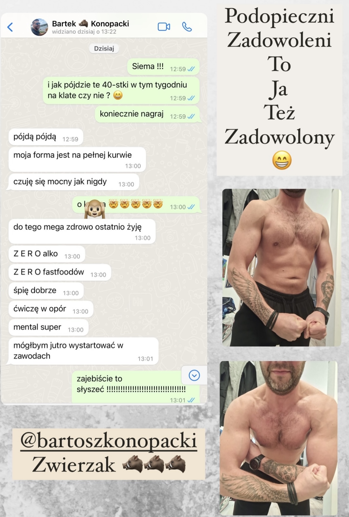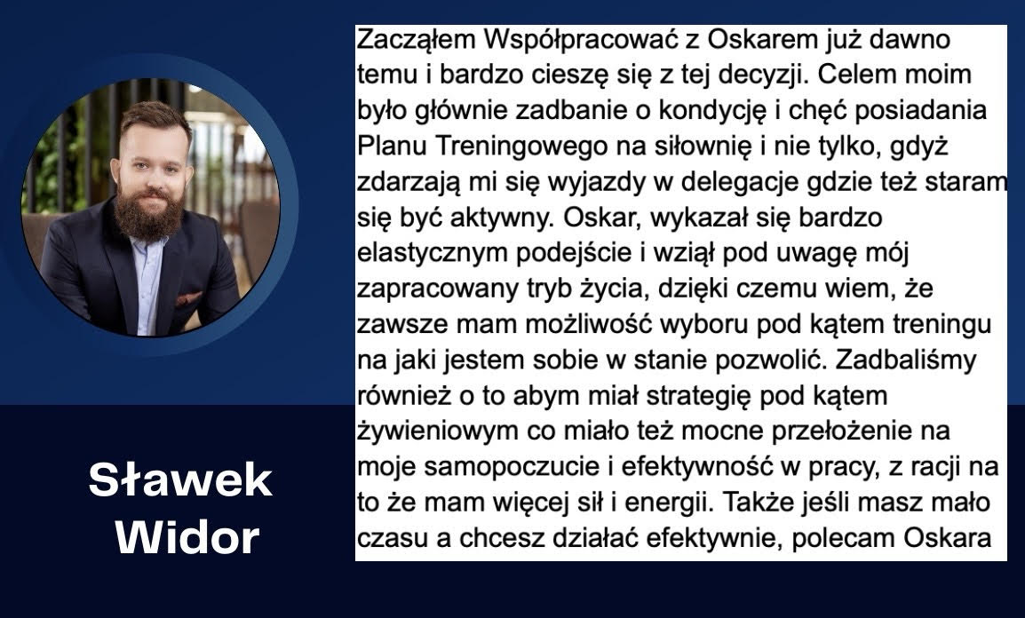 Zawdzięczam mu wiele i chce również Tobie pokazać jak ogromne przełożenie ma trening i żywienie nie tylko na Twój wygląd, zdrowie, samopoczucie ale również psychikę, siłę podejmowania konkretnych decyzji i bycie pewnym siebie.