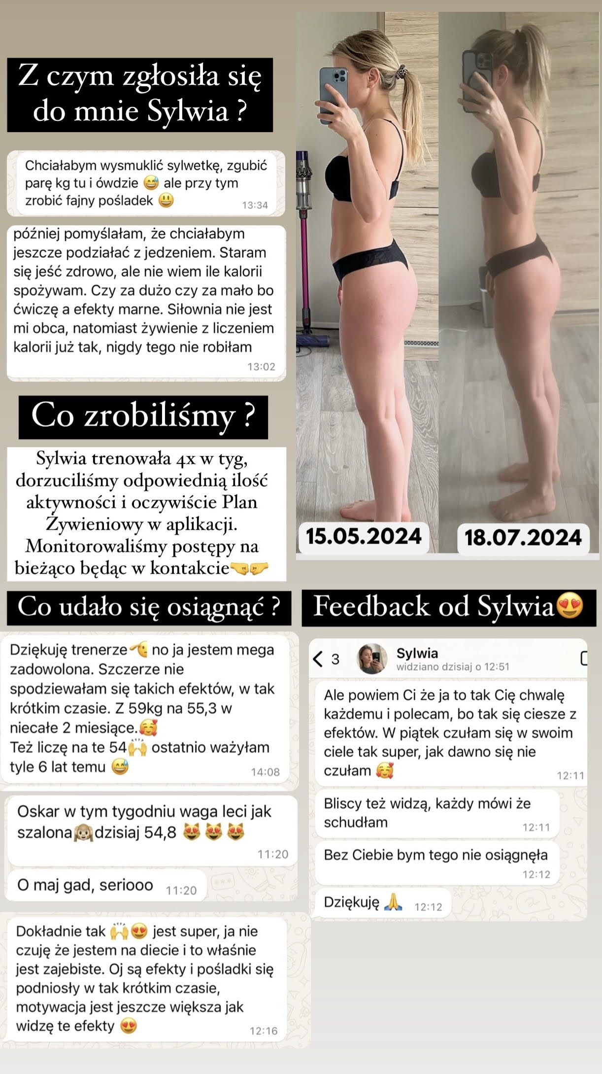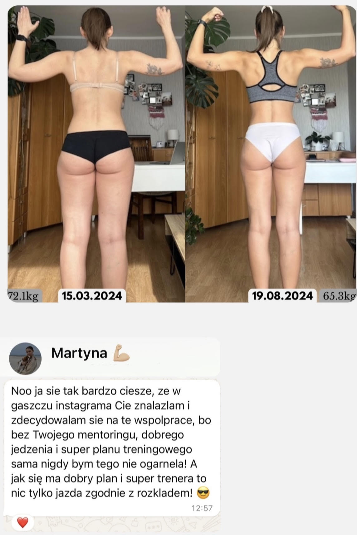 - Mam mnóstwo dowodów na to, że praca ze mną przynosi oczekiwane efekty: spójrz na przemiany, opinię oraz wiadomości!